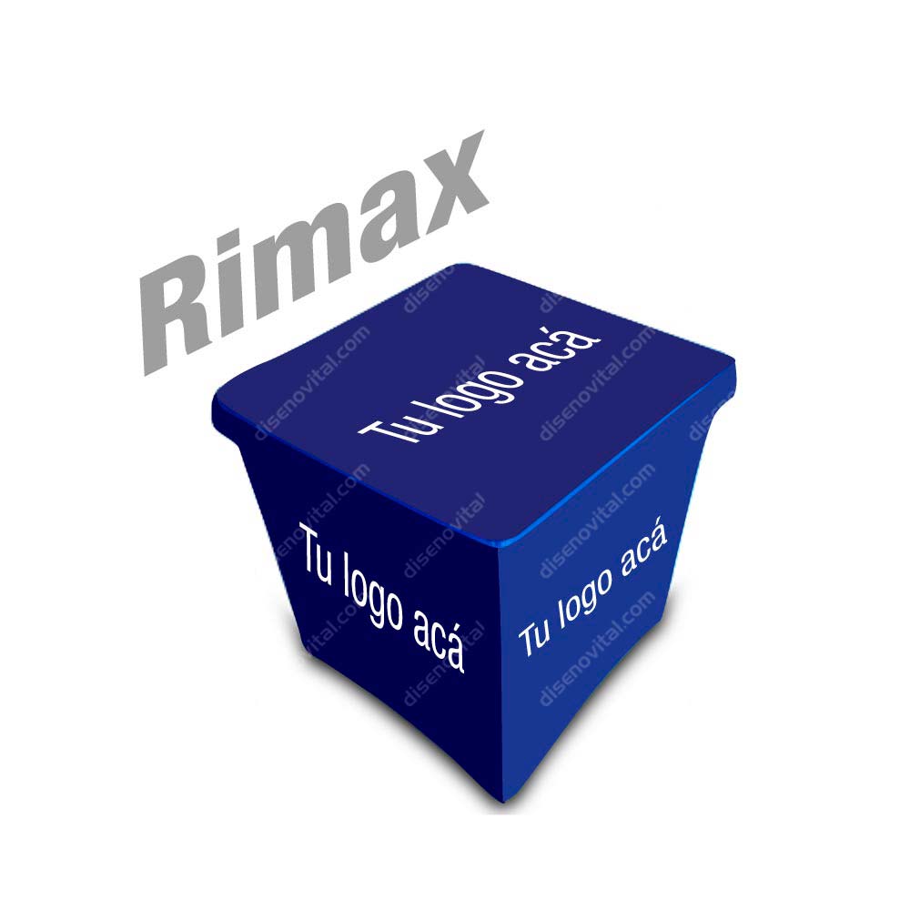 Cobertor spandex elástico publicitario personalizado para mesas plásticas Rimax para eventos empresariales